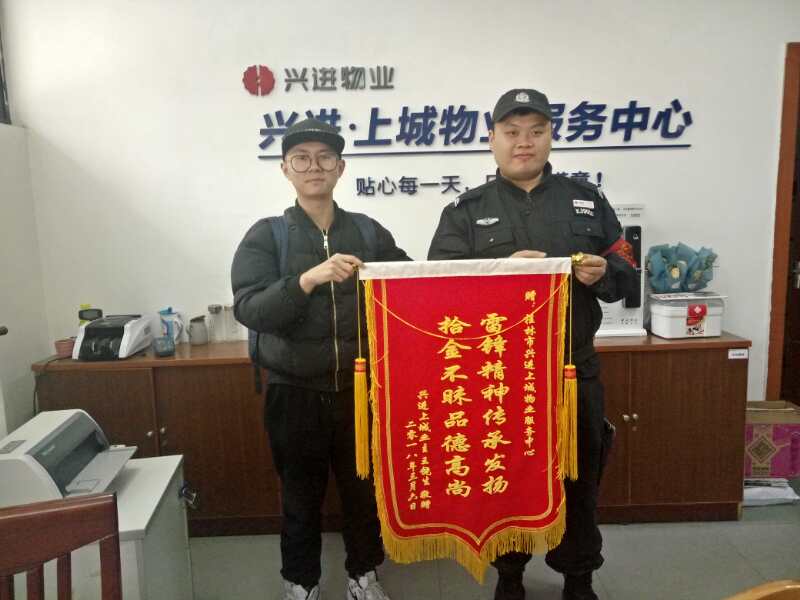 2018年3月6号,兴进上城的秩序员蒋灿辉同志在日常巡逻中于二单元地下室发现一个钱包,怕丢失钱包的业主着急,他立即交到物业服务中心并及时寻找失主。钱包里有640元现金和5张银行卡及一张身份证,秩序员根据身份证查找业主信息才得知是2-1-8-3的业主不小心落下的钱包,秩序员随后将钱包送到业主家中。业主表示非常谢:“我刚刚还在回忆我的钱包掉去哪儿了呢,着急得就像热锅上的蚂蚁一样,没想到,兴进物业拾到钱包后立即将钱包送到我家里,这小小的举动,让我感受到家庭的温暖,有兴进物业,我放心!”