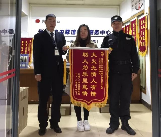 馄饨店老板对于兴进物业援助之手表示感谢,特意为物业工作人员送来锦旗:“大火无情人有情,助人为乐显真情。谢谢兴进物业团队,要不然我的损失可就大了。”