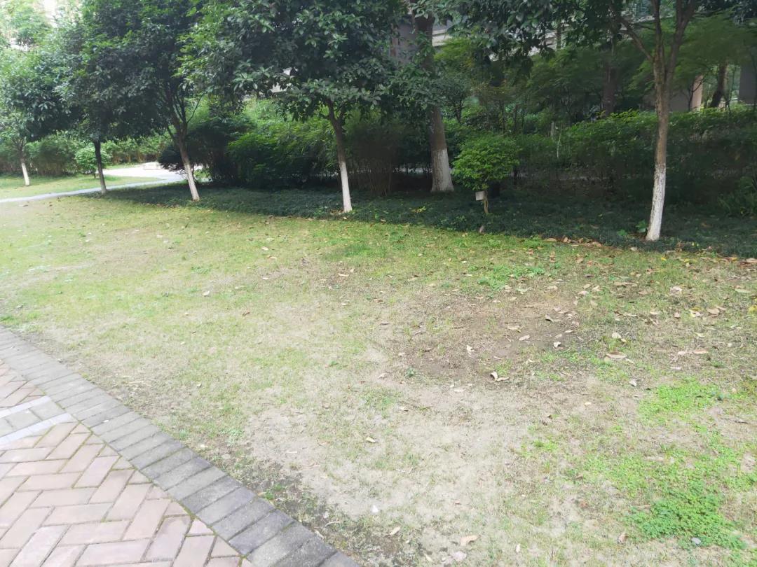 最常见的是人为踩踏,同时也有因为占地施工等情况带来的,而在光照不好或者容易积水的区域,喜光或者耐旱的植物不易存活也导致了地面黄土裸露。找出问题的成因后,兴进物业快速根据不同情况进行了相应整改。