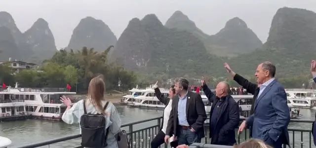 烟雨漓江如诗画,正是一年最美时,随着俄罗斯外长拉夫罗夫抵桂,世界目光再次聚焦桂林。俄外交部在官方推特上发布了一段TikTok短视频,视频中拉夫罗夫站在镜头前,背后为桂林山水,并配文"谢尔盖·拉夫罗夫外长在中国访问期间"。搭乘游船、沿途拍照、与其他游客打招呼......只见俄外长拉夫罗夫呈现出陶醉于山水间的悠然自得,将山水桂林、世界漓江再次展现在世人面前。