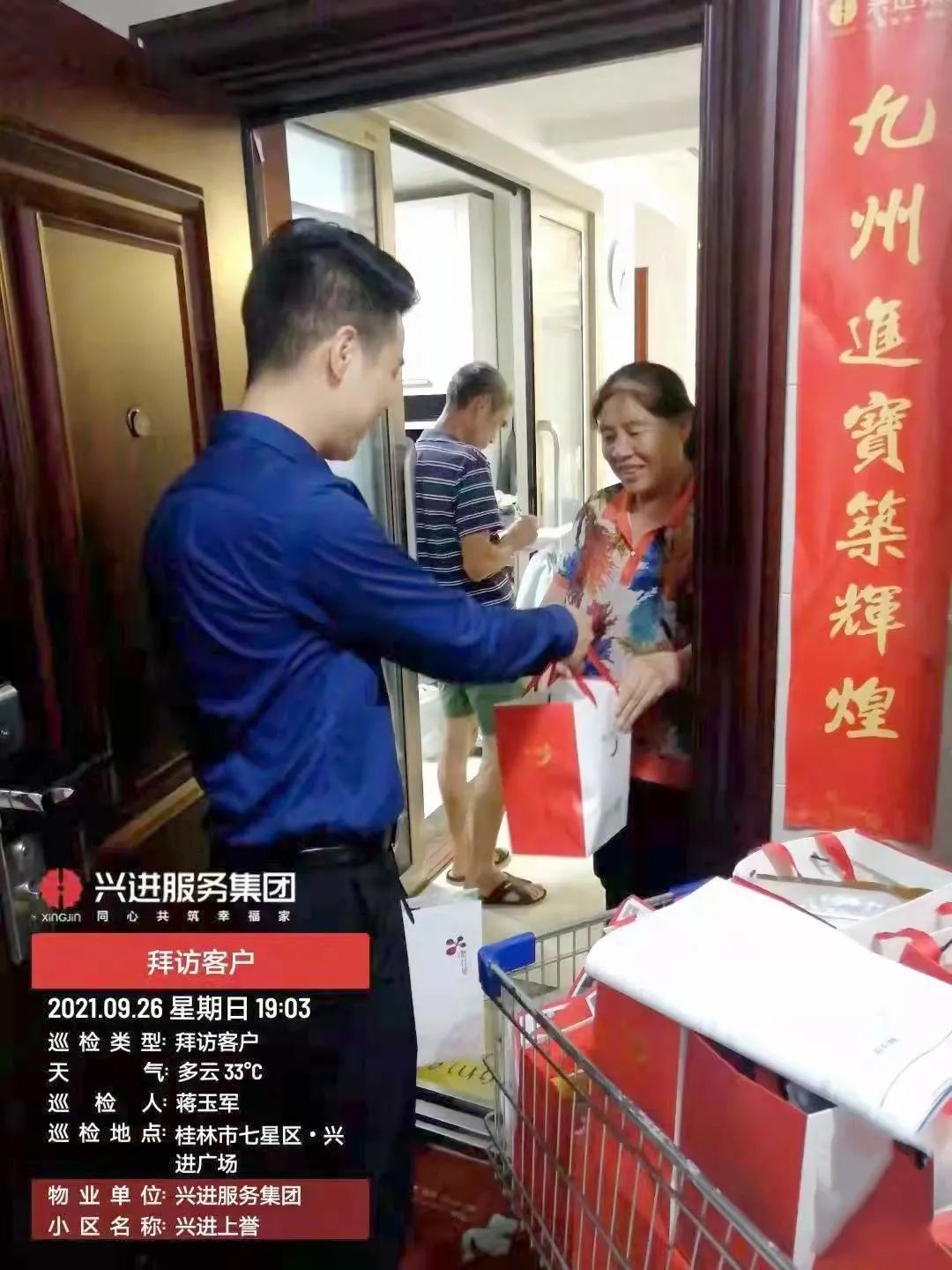 9月24-27日,在集团董事长兼总裁罗欣的带领下,工作人员将一份份满含谢意的兴进漓江·勝宴桂林米粉礼盒陆续送到老业主手中,接到感恩礼物的业主,脸上洋溢着愉悦的笑容。