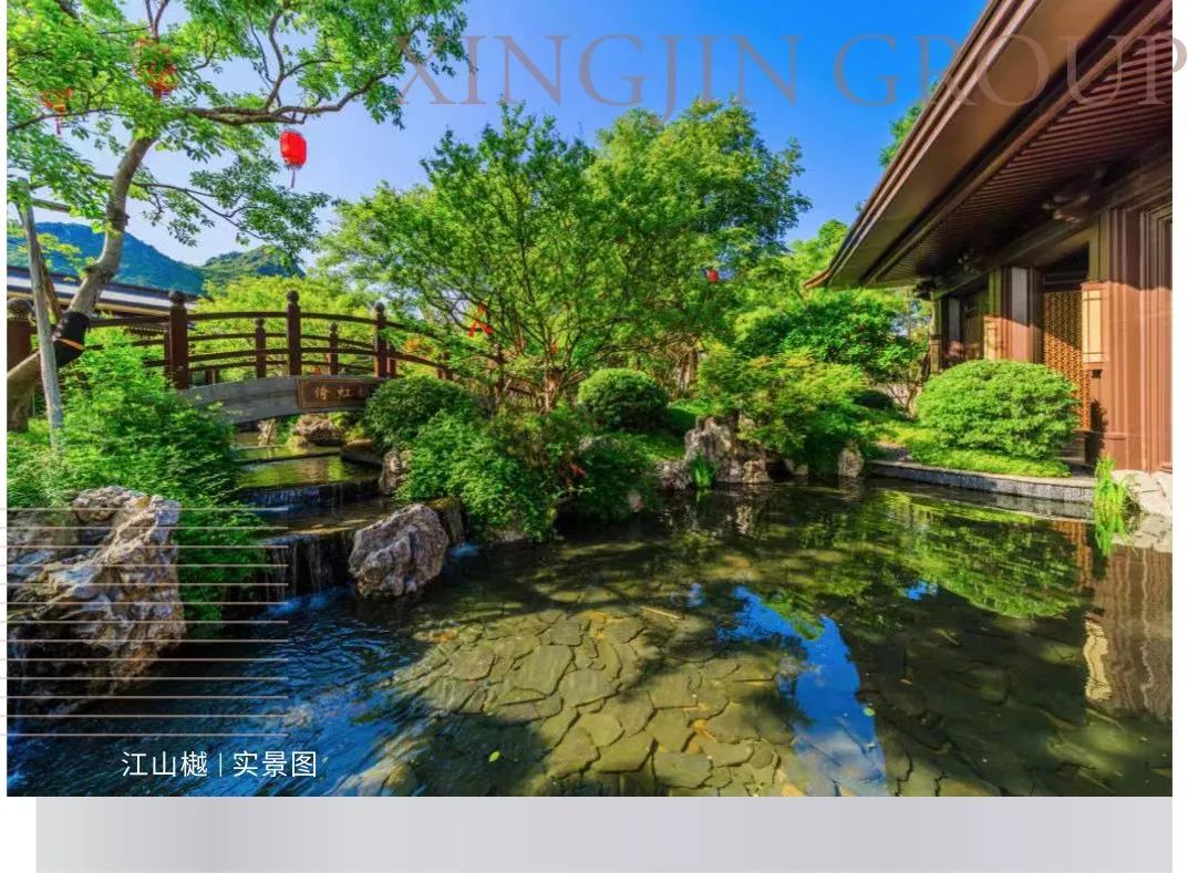 江山樾引江山入园,不仅结合当地的自然环境进行量身定制,而且园林中的林、木、水、石都十分讲究,仿佛随时随地都置身山水画卷中。